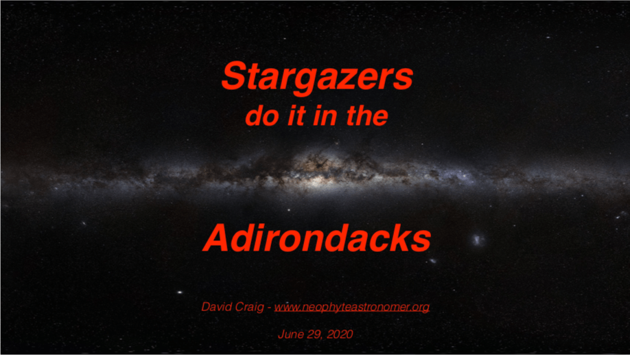 The Keene Valley library summer lecture series has gone virtual this year. I presented my view of stargazing under our beautiful and rare Adirondack dark skies.