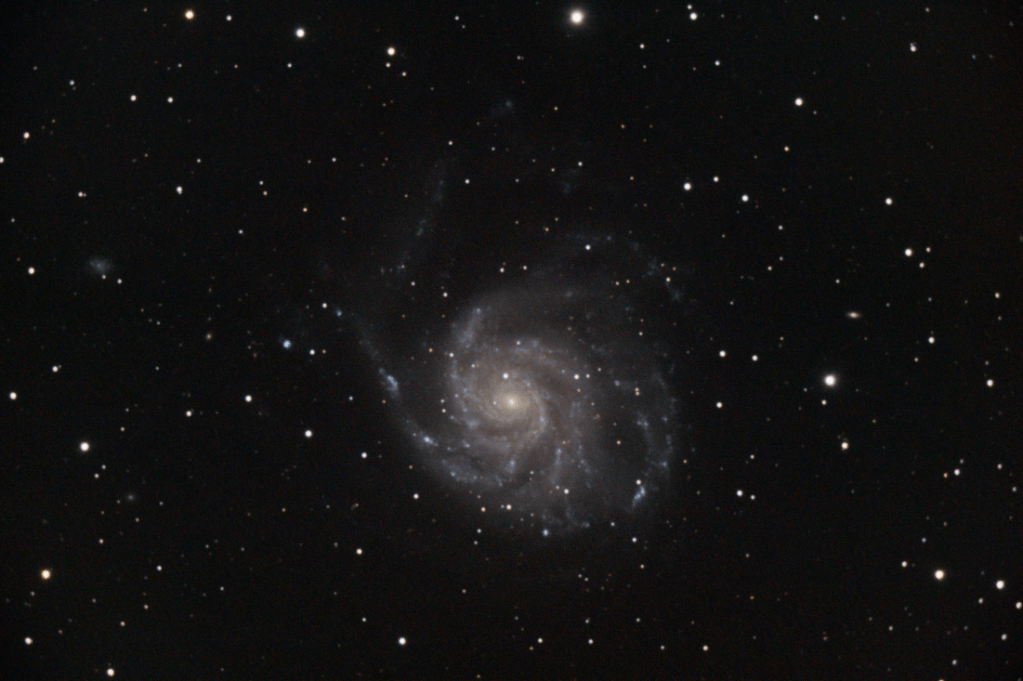 Another gorgeous night at the cemetery on 7/26/22, and I’m continuing my flirtations with M101. A little less sky glow than my previous attempt at the Pinwheel Galaxy, and a little cooler – less thermal noise in the camera. And, I timed it just right with my failing battery and managed to capture 53 images.