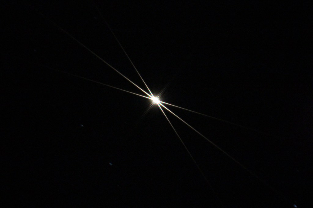 Here’s a pro tip though for deep sky photographers from a neophyte astronomer – don’t forget to remove your Bahtinov mask! A Bahtinov mask is a focusing aid that you place in front of the telescope while fine-focusing on a bright star. It’s a deceptively simple yet terrific tool, one that I cut from a sheet of poster board using a craft knife. The mask produces a distinctive spiked diffraction pattern which becomes symmetrical when your point-source (star) is in perfect focus. Great!