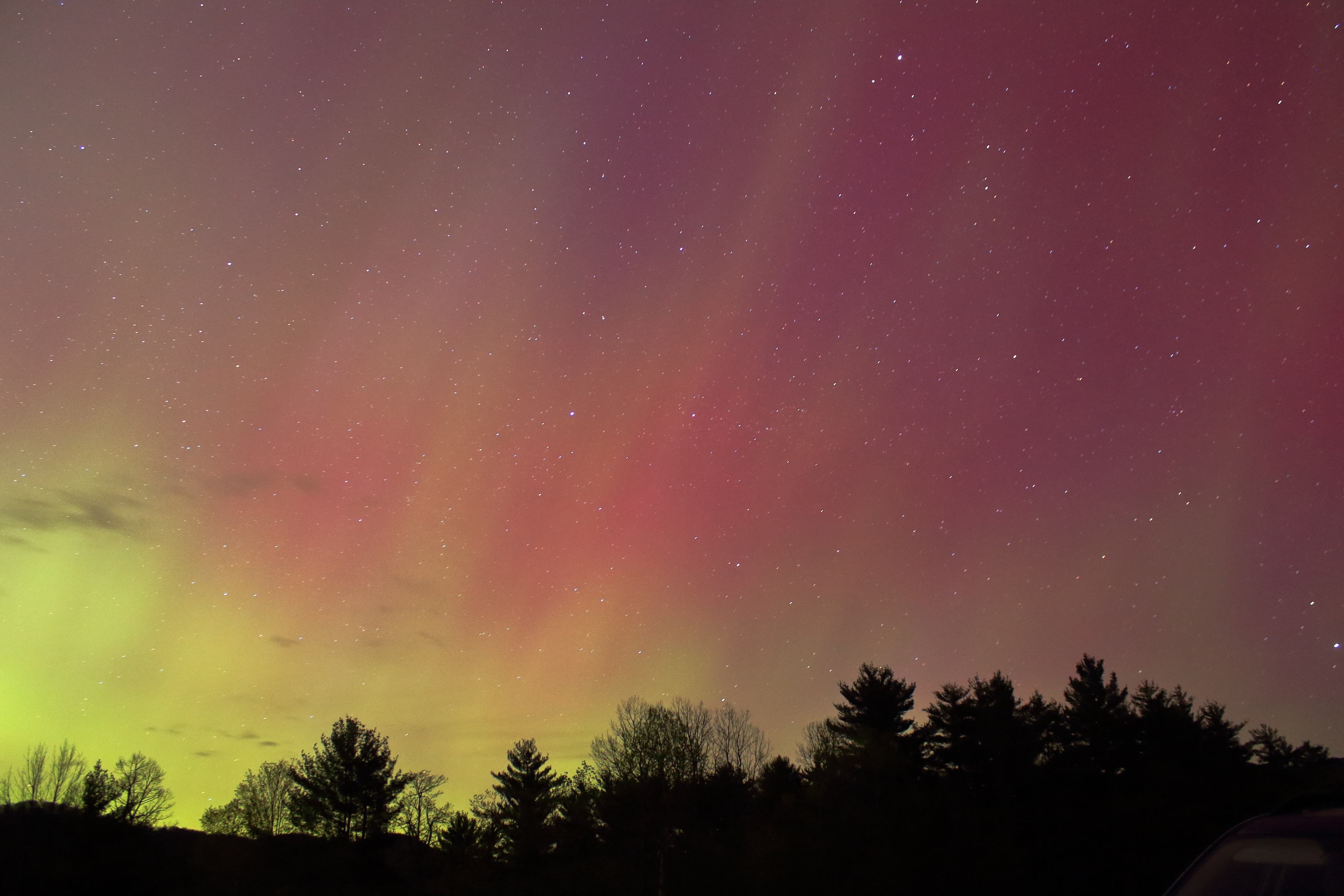 Geomagnetic alerts all over the news on Friday May 10th, and the NOAA website lit up like a Christmas tree sent me scurrying outside at 10:00 PM hoping for the clouds to lift. We’ve had so many false aurora alarms over the years, but this one was different.